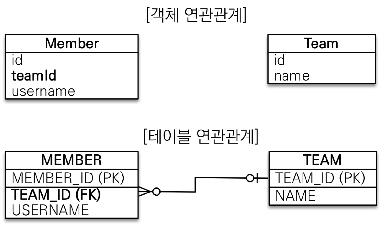 테이블은 외래 키로 조인을 사용해서 연관된 테이블을 찾습니다. 그리고 객체는 참조를 사용해서 연관된 객체를 찾습니다. 이 둘간에 이러한 큰 간격이 있습니다. 이러한 차이를 인식을 하는 것이 중요합니다.