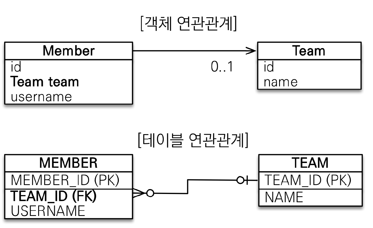 @JoinColum(name = "TEAM_ID")를 사용해서 Member.team 필드를 TEAM_ID외래키와 매핑했습니다. 따라서 Member.team 필드로 회원 테이블의 TEAM_ID외래키를 관리합니다.