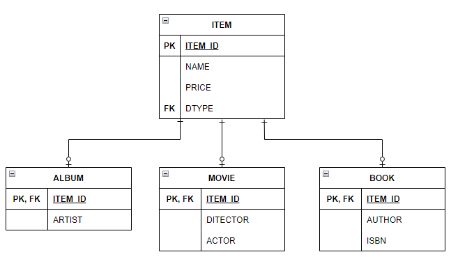 객체는 상속관계라는 기능을 가지고 있다. RDB에서는 같진 않지만 이와 유사하게 Table간의 슈퍼타입, 서브타입 관계가 있긴 하다. 이를 이용해서 객체와 테이블을 잘 쪼개어 설계하더라도 여러 문제가 발생한다. 다음의 다이어그램을 보며 몇 가지 예시로 문제점을 살펴보자.